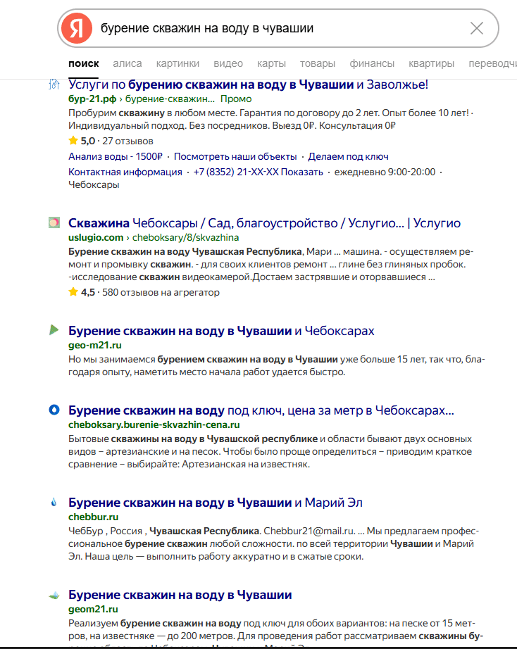 Далее, по достижению вышеизложенных результатов, мы приняли решение создать еще 2 сайта клона. И весь следующий год мы работали над этими задачами. Так появились: https://geo-bur21.ru/ и https://geo-m21.ru/.